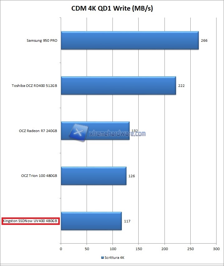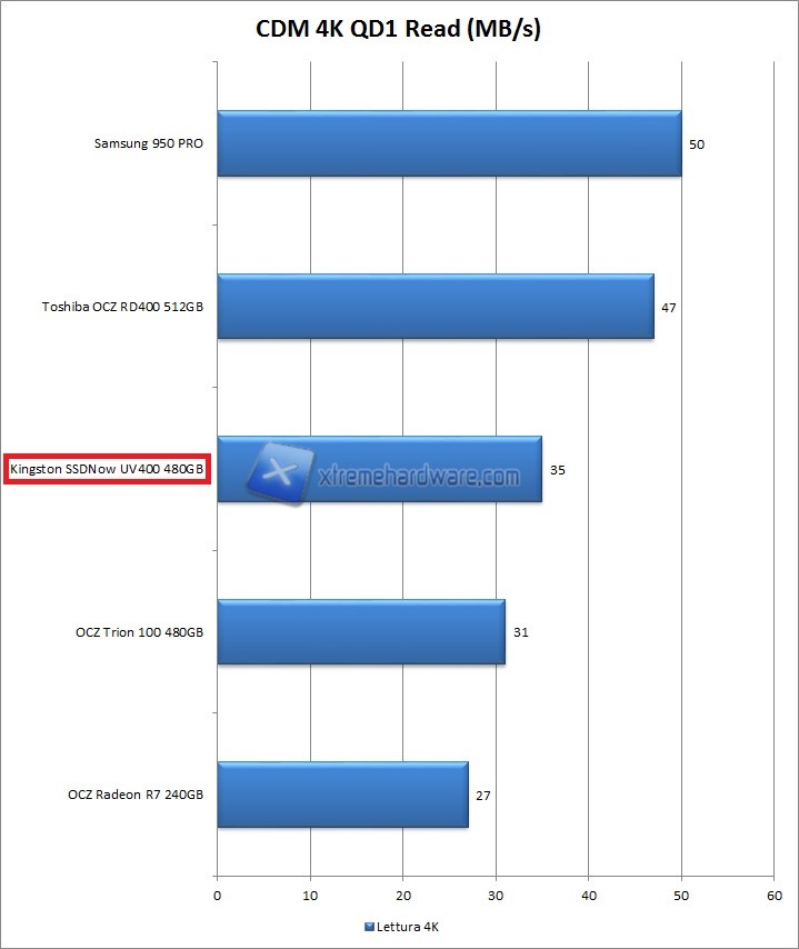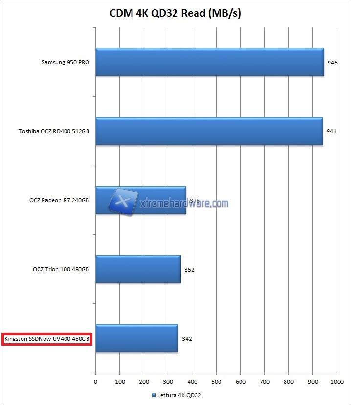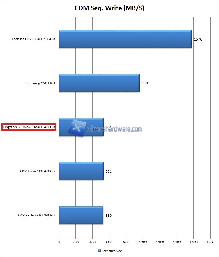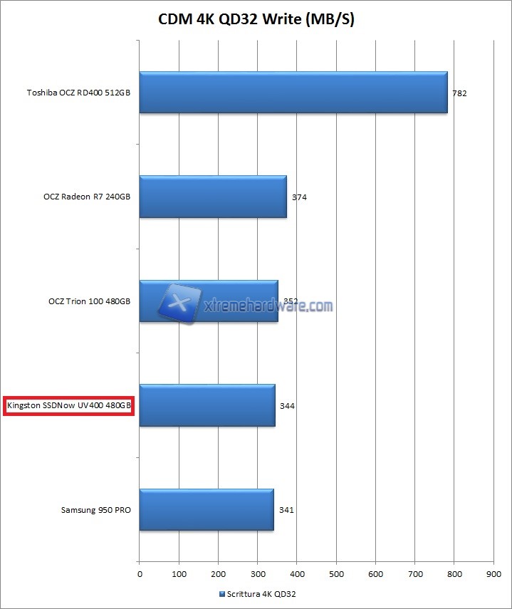 A seguire i grafici con i valori ottenuti dal Kingston SSDNow da 480GB: